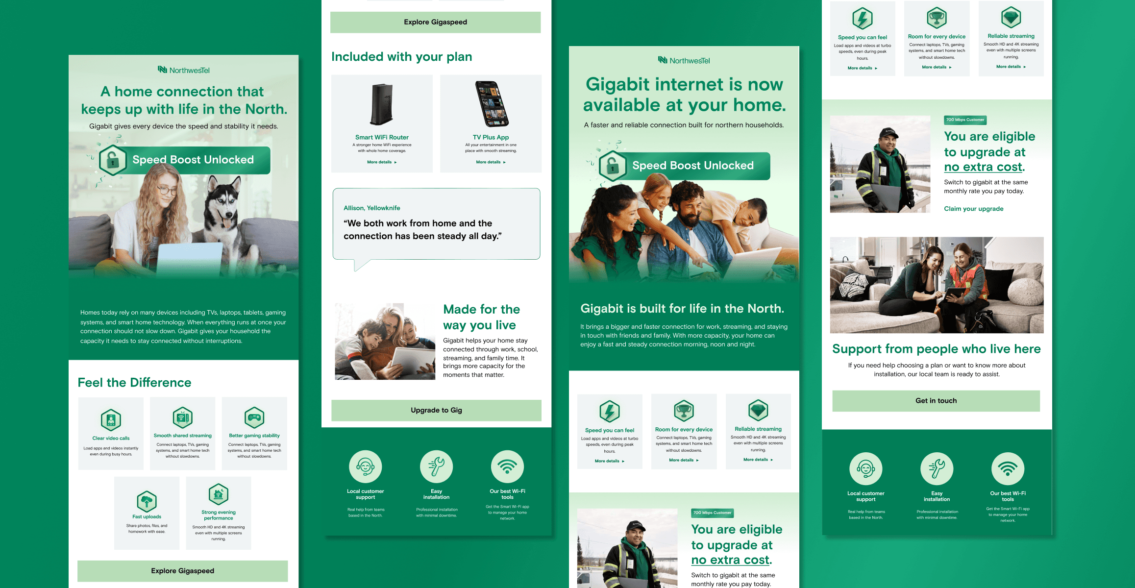 The landing page helped educate what couldn't be expressed in briefer touchpoints. We took users through the service tier, built interest, and drove them to reach out to the sales team for an upgrade. Within the first 30 days from launch, the campaign reached 140% of their conversion goal and vastly increased both email open rate and click-through. It was a major success that brought the needed awareness and started conversations around moving up to 1 Gig internet.
